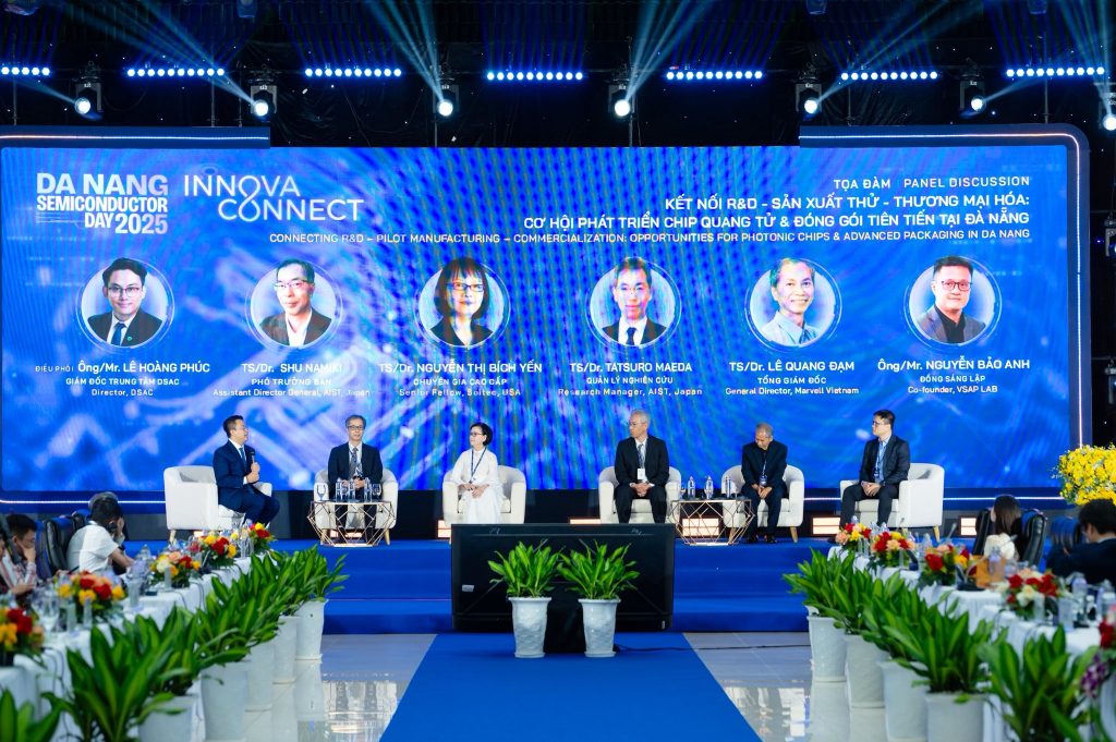 During the panel discussion “Connecting R&D – Pilot Production – Commercialization: Opportunities for Photonic Chip & Advanced Packaging Development in Da Nang”, moderated by Mr. Le Hoang Phuc – Director of DSAC, experts from AIST (Japan), IEEE (USA), Marvell, and the Global Semiconductor Business Association focused on the opportunities for developing photonic chip and advanced packaging technologies in Da Nang. The discussion emphasized the importance of international cooperation, cleanroom infrastructure investment, and the Lab-to-Fab model to accelerate the transition from research to practical application. In particular, experts highlighted the crucial role of government guidance and support in creating a favorable environment for enterprises and fostering the growth of Vietnam’s semiconductor ecosystem.